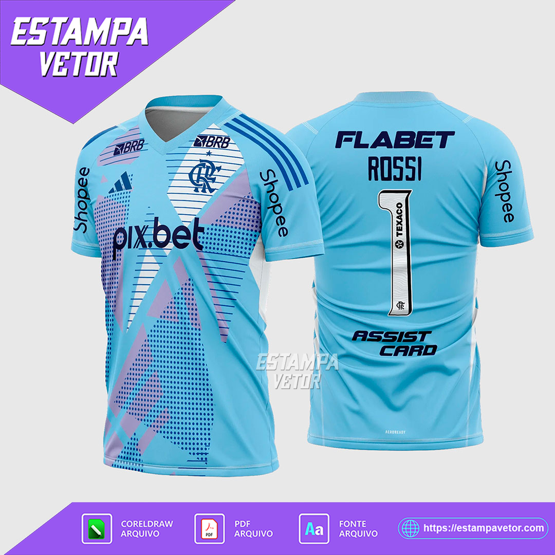 O produto Arte Vetor Camisa Flamengo Goleiro I 2025-2026 vendido é um arquivo digital nos formatos Corel Draw X7 (.cdr) e PDF, disponível para download na área do cliente após a confirmação do pagamento. Não enviamos produtos físicos.