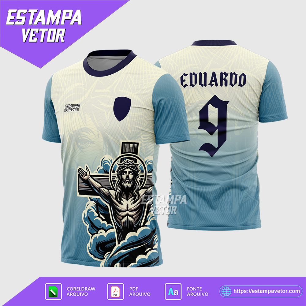 Este arquivo vetor Corel Draw (.CDR) proporciona uma experiência de edição extremamente intuitiva. Primeiramente, você aplica o design de forma rápida. Além disso, você altera cores, adiciona números, nomes e outros elementos visuais com facilidade. Dessa forma, você personaliza cada camisa para seus colegas de equipe. Em outras palavras, esta arte é perfeita para garantir a representação impecável da figura de Jesus Cristo e a união da sua turma na sublimação, ideal para campeonatos escolares e celebrações com um toque de espiritualidade.