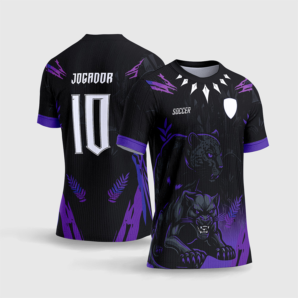 Primeiramente, prepare o catálogo da sua loja de sublimação para faturar altíssimo no explosivo e lucrativo nicho de Jogos Escolares e times amadores oferecendo a espetacular e imponente Arte Vetor Camisa de Interclasse Pantera Negra Roxa 2026. Atualmente, as turmas de escola e as equipes de e-sports buscam incessantemente designs que transmitam liderança, agilidade furtiva e uma forte conexão com a cultura pop e os super-heróis. Sendo assim, este modelo digital foi meticulosamente elaborado pelo Design Lendário para entregar exatamente essa estética premium e heroica que a juventude deseja vestir. Além disso, a combinação magistral da base em Preto Absoluto com a impressionante explosão de texturas e ilustrações em Roxo/Violeta Vivo garante uma peça de extremo impacto visual, estilo moderno e altíssima conversão de vendas em atacado.