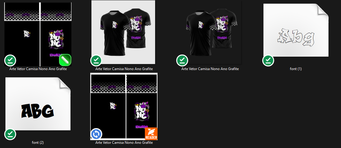 Vetor CDR (CorelDRAW): Arquivo 100% editável. Todos os elementos gráficos, a estampa quadriculada das mangas, o efeito dripping e os mascotes estão organizados em camadas separadas. Isso permite alterar o roxo para a cor oficial da escola do cliente em poucos cliques.