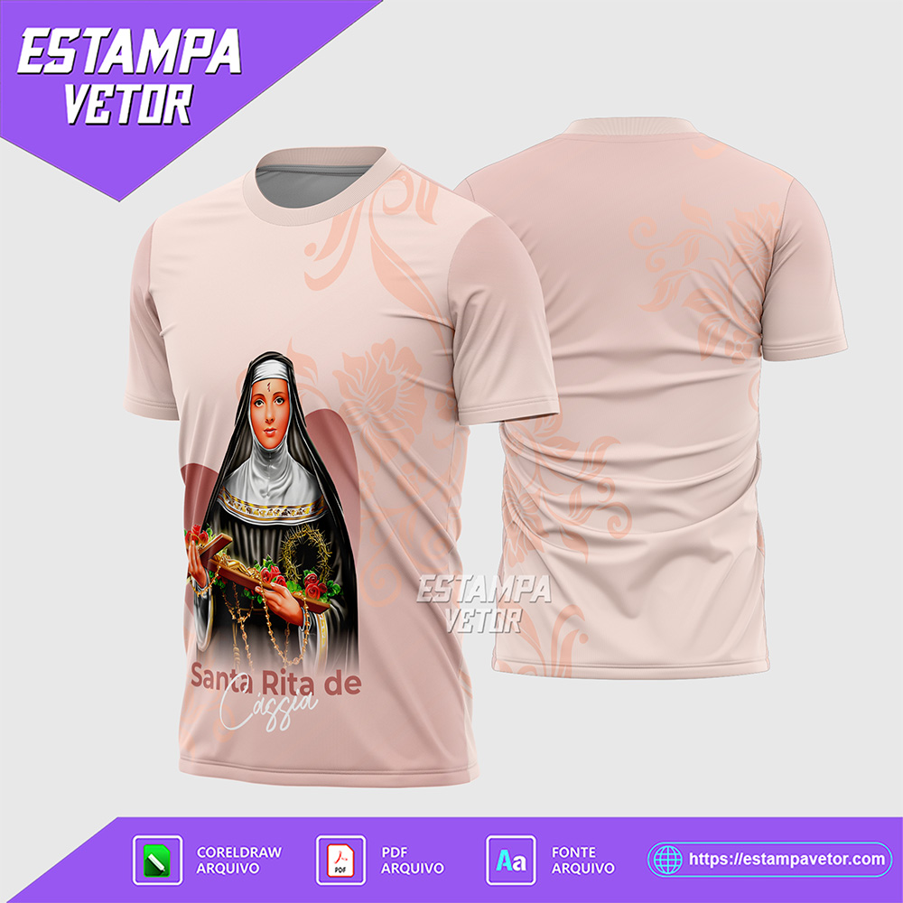 Você busca uma Arte Camisa Santa Rita de Cássia que capture a devoção, o milagre das rosas e a força da Santa das Causas Impossíveis? Encontre aqui a ferramenta ideal para seus designs. Nossa arte é perfeita para designers, sublimadores e fiéis que buscam um arquivo exclusivo e totalmente editável. Assim, você consegue designs incríveis para expressar a fé na padroeira dos casos desesperados.