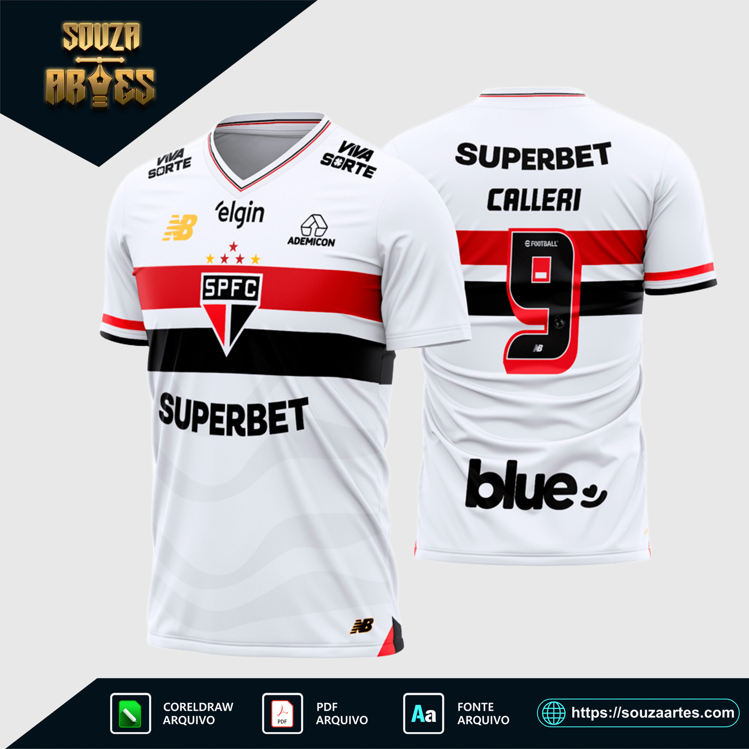 O produto Arte Vetor Camisa São Paulo Titular 2025-2026 é um arquivo digital disponível nos formatos Corel Draw X7 (.cdr) e PDF, pronto para personalização. Após a confirmação do pagamento, o download estará disponível na área do cliente. Não enviamos produtos físicos.
