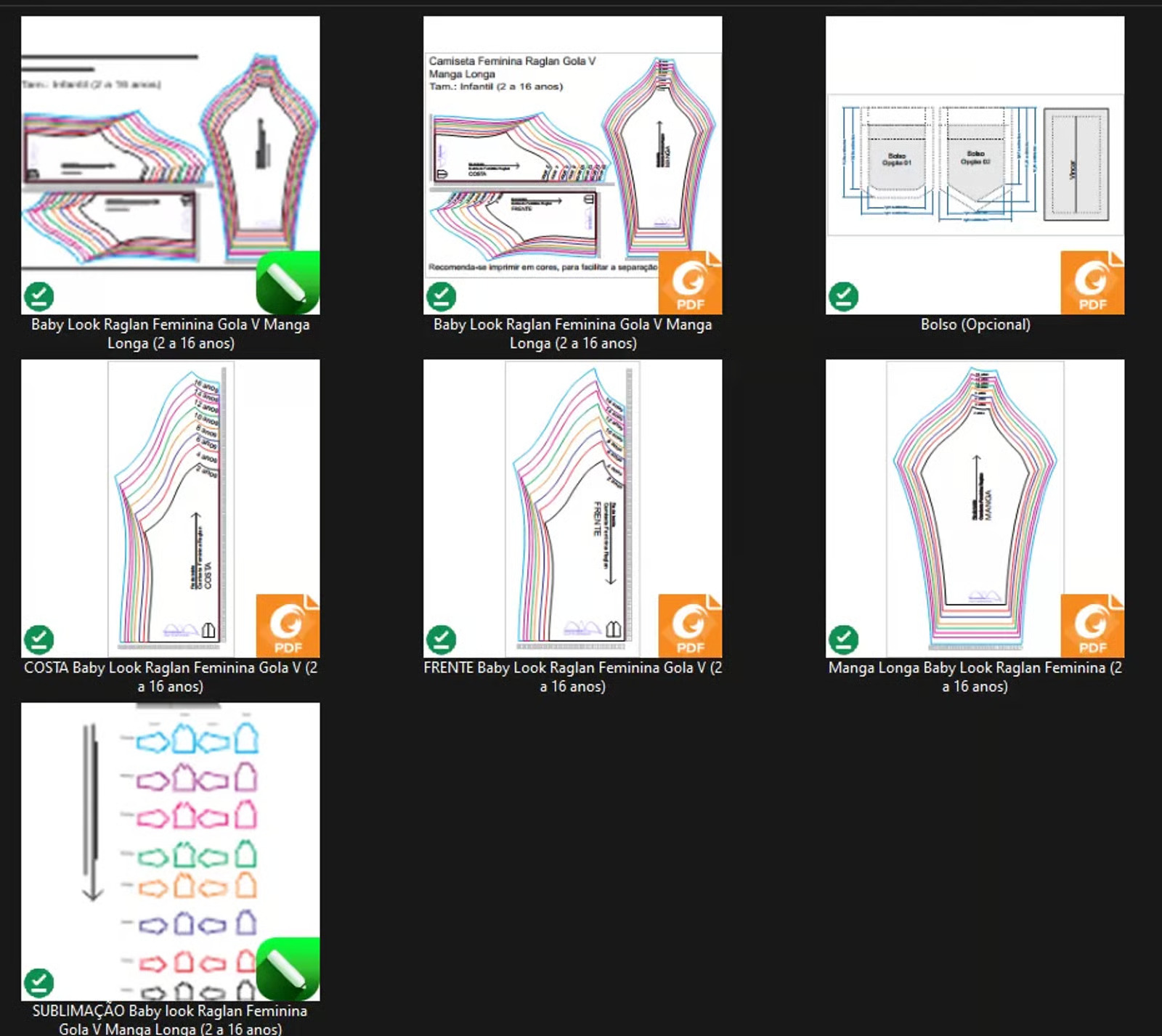 Molde de Costura Para Imprimir Camiseta Infantil – 06 – Baby Look Raglan Gola V Manga Longa (2 a 16 anos)