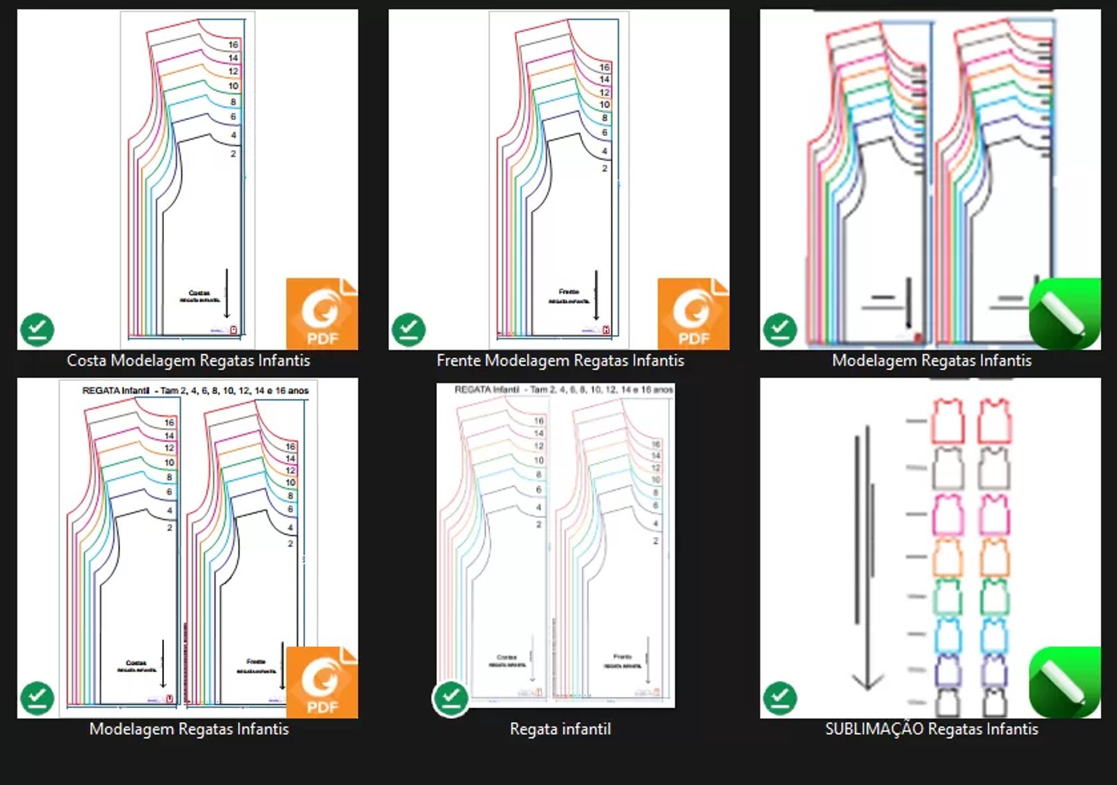 A qualidade do arquivo digital garante medidas exatas. Em outras palavras, você obtém um molde testado, com grade de tamanhos variada, pronto para imprimir em impressora comum (A4) ou plotter. Além disso, este molde é essencial para quem trabalha com sublimação total, servindo como gabarito para aplicar as artes antes do corte.