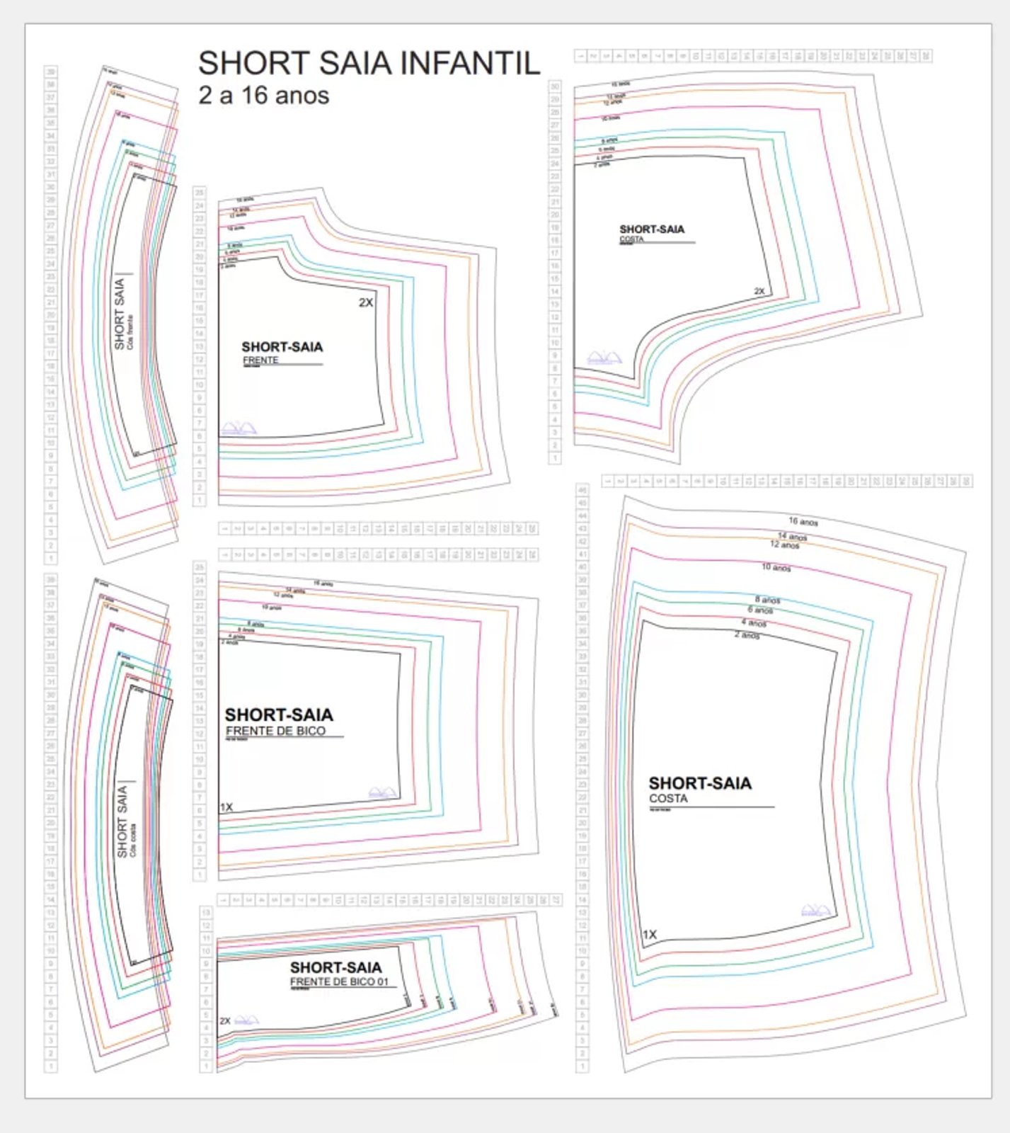 Molde de Costura Para Imprimir Camiseta Infantil – 35 – Short Saia Infantil Fitness (2 a 16 anos)