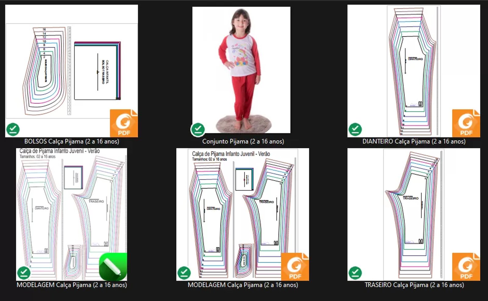 Molde de Costura Para Imprimir Camiseta Infantil – 40 – Calça de Pijama Infantil _Verão_ (2 a 16 anos)